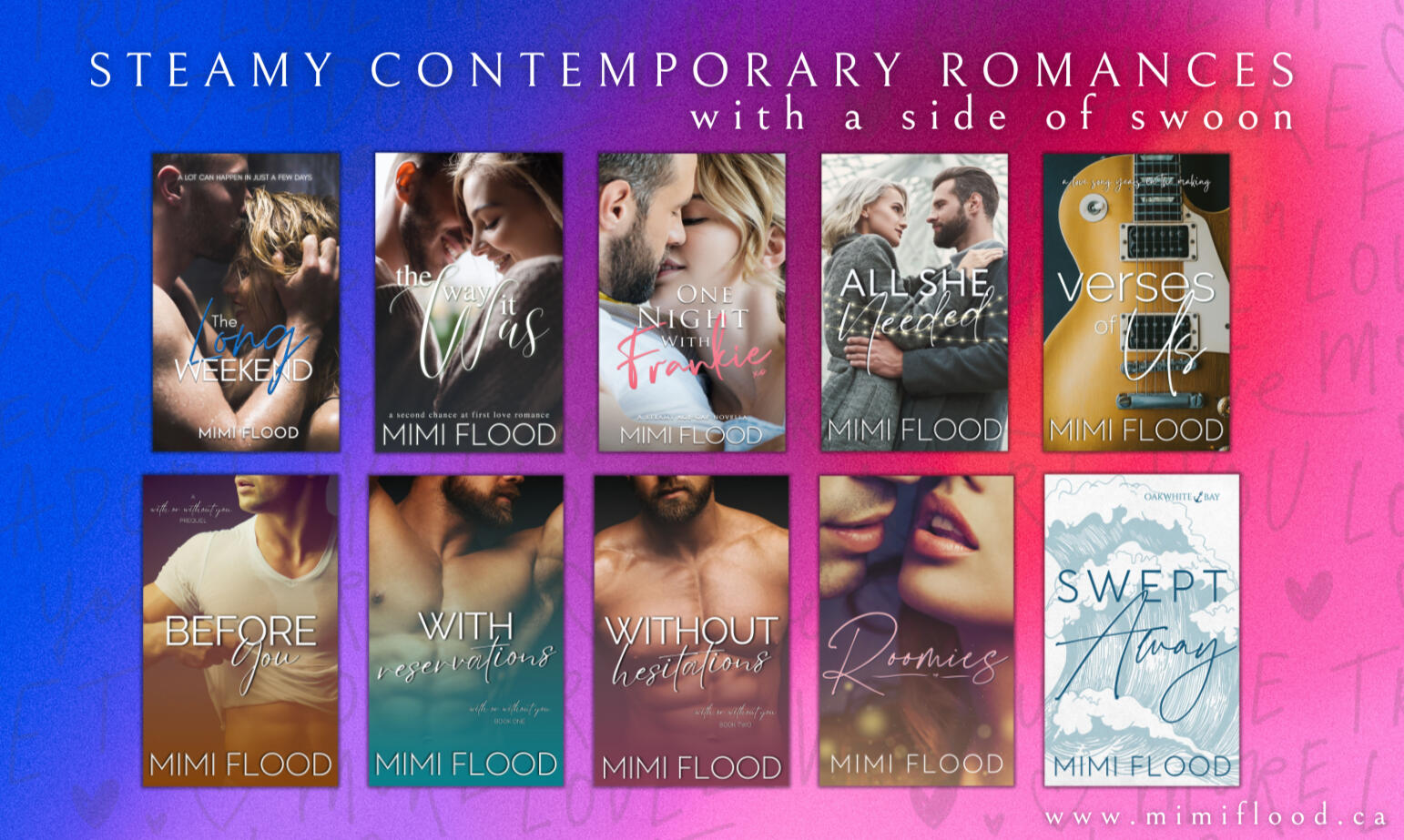 Hi, I’m Mimi!Welcome!I write sizzling romances packed with heart, heat, and just the right amount of angst. A lifelong lover of movies, screenwriting, and happily-ever-afters, I hope my stories will make you laugh, cry, and swoon (maybe even all at once).Aside from writing, I'm a bad-mom, an alright wife, a die-hard Supernatural and Friends fan, and an unapologetic apple pie connoisseur.Thanks for stopping by! 😘